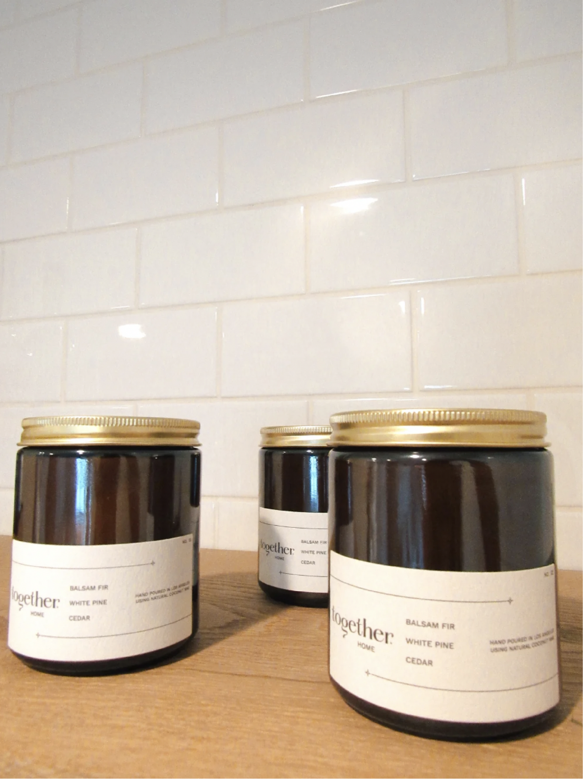 Each candle is hand-poured in California using 100% non-toxic coconut & apricot wax blend, 100% lead and zinc free cotton wick and 100% pthalate free scents.