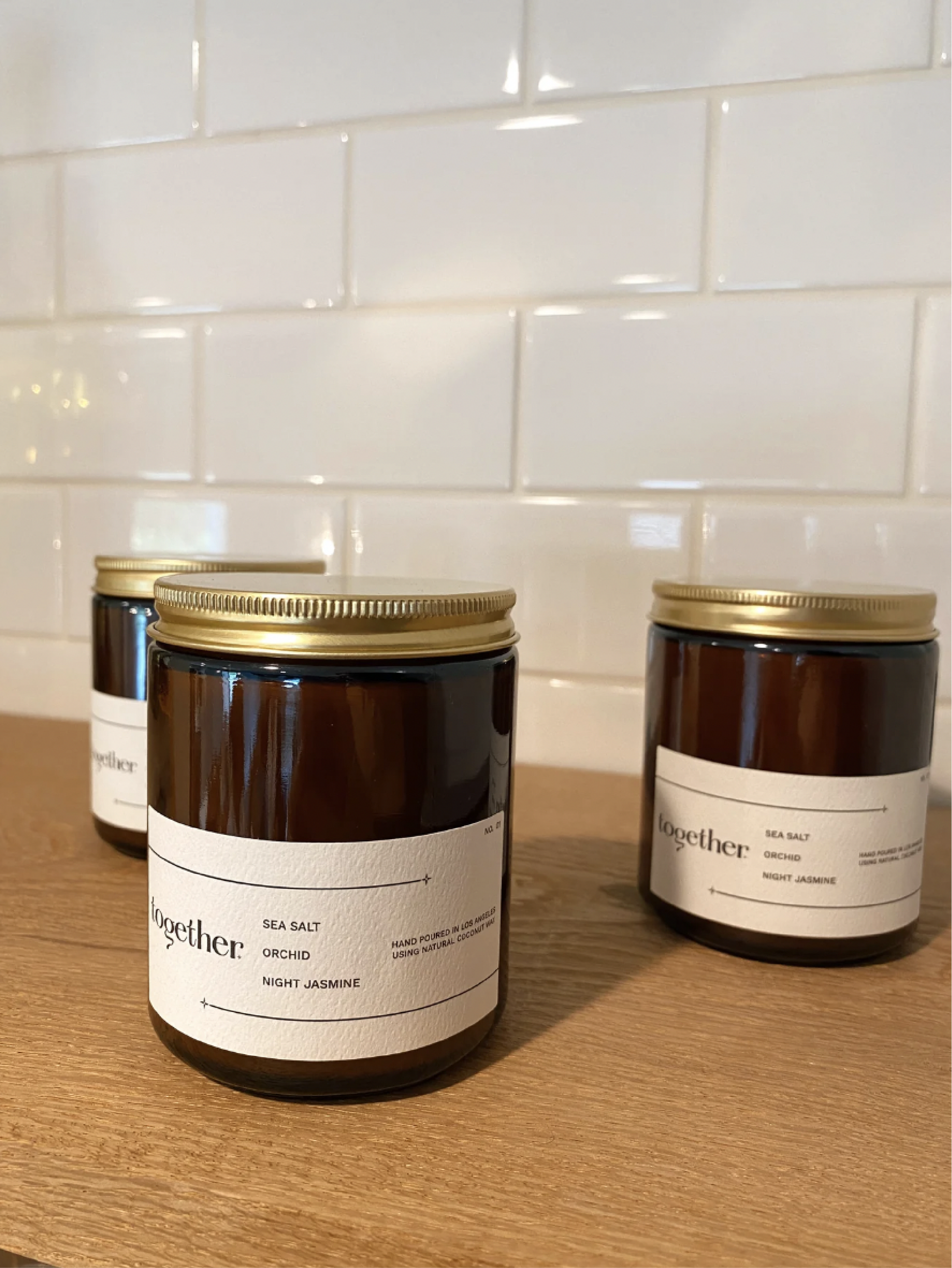 Pops of orchid blended with night jasmine and sprinkled with sea salt create a relaxed atmosphere in your home. We fell in love with this beautiful candle because it combines our favorites into one to create the signature together scent.